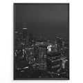 Fashion Plakat | Chicago Cityscape at Night – Black and White Urban Photography Plakaty.dk | Black and white photo of the Chicago skyline at night with illuminated skyscrapers and city lights