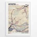 Ladda upp bild till gallerivisning, Japanske plakater | Japanese-style poster with cherry blossom branches over flowing waves, featuring soft pastel tones and the text “Kyoto Japan” and “Cherry Blossom.”