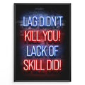 Lag Didn't Kill You plakat | Neon gamer-citat i blå og rød – sjov vægdekoration til gamingværelset