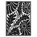 Noir Floral Plakat | Matisse Poster | Abstrakte sorte blomster og blade på hvid baggrund