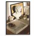 Ladda upp bild till gallerivisning, Fashion Plakat | Modern Vanity Scene with Sculptural Bust, Jewelry, and Perfume – Aesthetic Interior Print Plakaty.dk | Stylish vanity setup with a white classical bust, gold jewelry on a marble tray, designer perfumes, and crystal glassware in warm lighting.