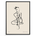 Ladda upp bild till gallerivisning, Framed bohemian collection poster featuring minimalist black line art of a seated female silhouette on a beige background with subtle text.