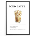 Ladda upp bild till gallerivisning, Iced latte recipe poster with a glass of iced espresso and milk.